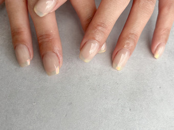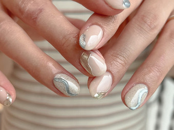 クリア感たっぷりのベースにシルバーでフレンチラインを。 夏らしいデザインです。