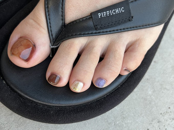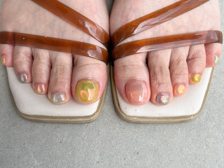 人気のオーロラネイルはフットでもお楽しみいただけます フットネイルは派手目カラーがオススメです!
