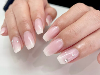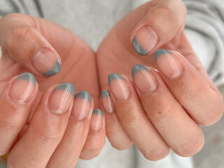 透け感のあるピンクにくすみブルーのフレンチ。