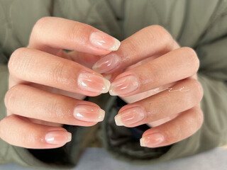 中心からジュワッと丸くグラデーションを作るデザイン。女性らしい可愛いネイルに。