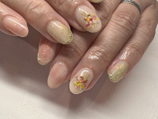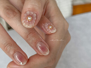 じゅわっとチークネイルにポイントでぷっくりフラワーを。