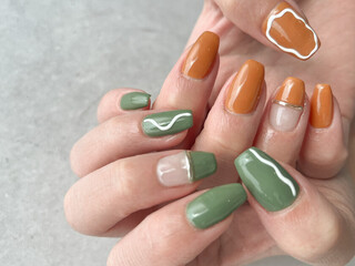 オレンジでグリーンで春っぽく! 白のうねうねがポイントです^^