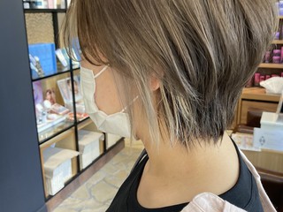 ケアブリーチをした髪にミルボンの【エノグ】シアンでカラーリングした 仕上がりです。 このエノグというカラー剤の特徴は、退色の仕方が、色味のままおちていくので、 変…(続きを読む)