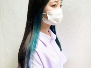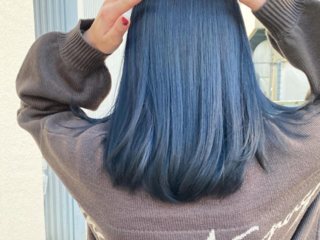 カットテクニックによって見え隠れする青のバランスはぜひスタイリストとご相談ください。黒髪とのコントラストがおしゃれ感を際立たせてくれます。