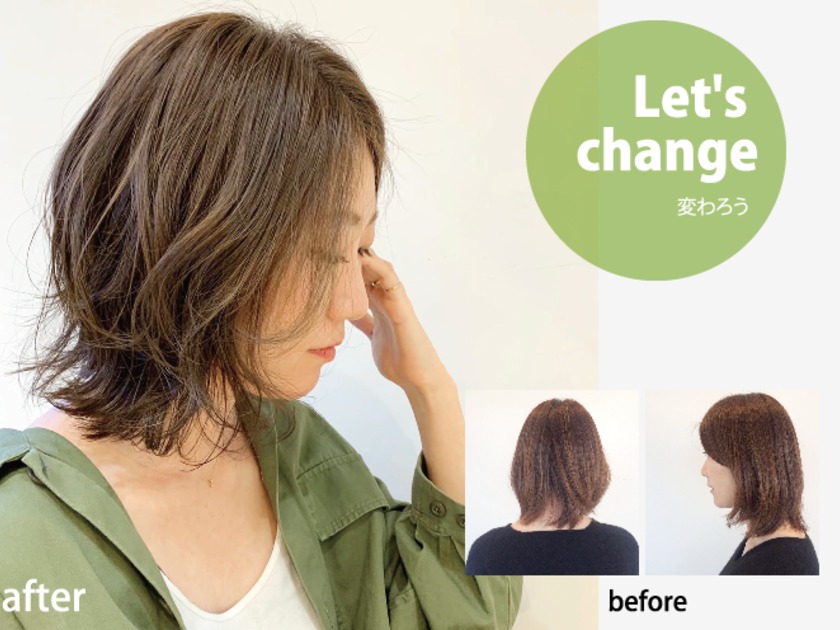 チークの位置を変えてみませんか?眉のカタチを少しだけ太めに!ポイントメイクで雰囲気が変わりますヘアースタイルも同じ、ボリュームの位置で抜け感を出して印象アップ!何かを変えたら気分も変わります。ぜひぜひ!ご体験下さい。