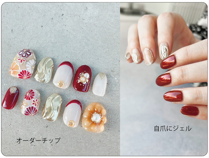 ●オーダーチップは爪のカタチに合わせ成人式のためのオリジナルデザインで仕上げます。