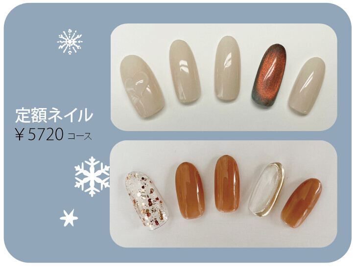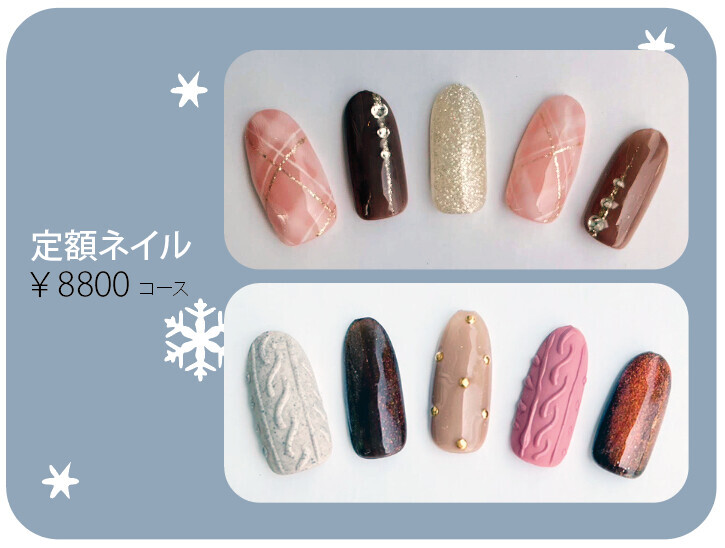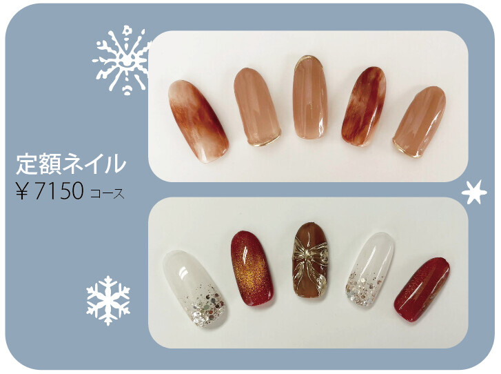 冬の定額ネイルです。ぜひお試しください。