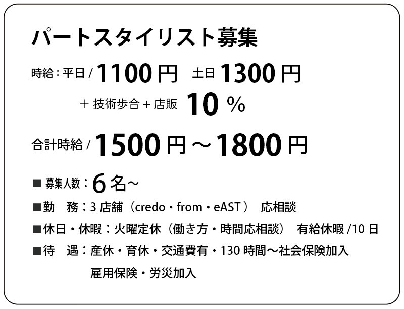 2024年5月よりアシスタント募集に加えパートスタッフの募集を追加いたしました。