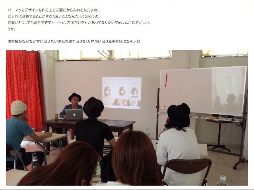 2015年秋。クレドで行われたカット講習会。 講師はお馴染み 原宿MINX 店長 大竹祐紀氏 スタイリスト全員がこの秋のトレンドと年代別デザインポイントついて学びました。 午前中はカウンセリングからお客様の「なりたい」を引き出すための心の読み取り方。 午後はヘアーカタログを見てのカット実技を行いました。 2次元から3次元に移行する際のテクニックポイントとその注意点。 見て同じものをつくる。 簡単に言えばたったそれだけの事ですが それぞれが感じる視点やクセ等で 微妙な違いがおきる事を感じました。 もっと深く学び、よりお客様に喜んでいただけるサロンをめざす!