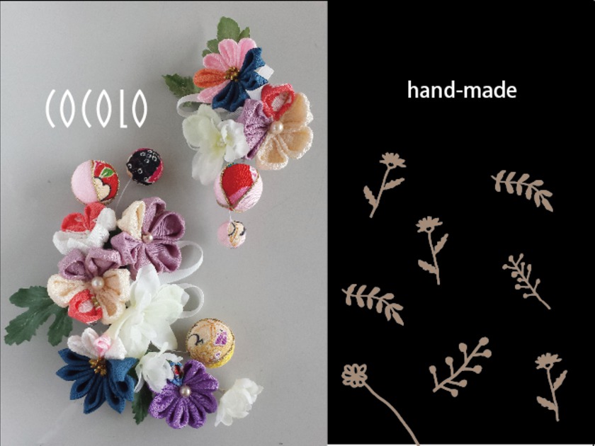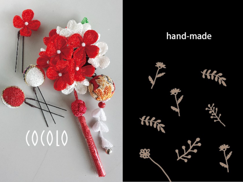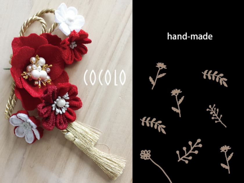 アンティークな雰囲気のフルオーダーちりめん細工。