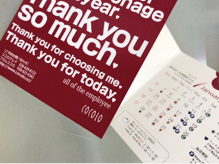 只今来年1.2月のサービスデーカレンダー配布いたしております。