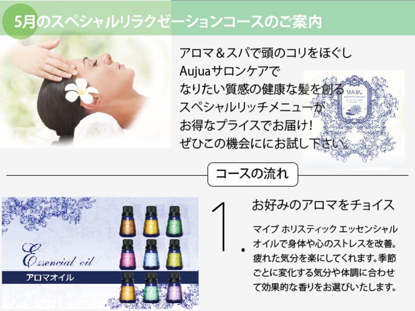 ヘッドSPA(40分)とAujuaトリートメントが50%OFFで