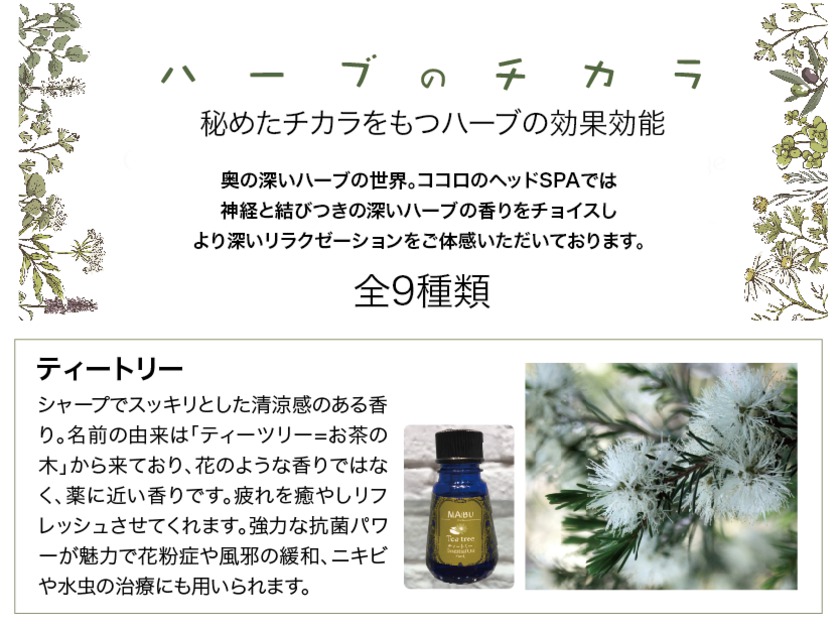 1.ハーブの力とオールハンドテクニックで頭皮と心をほぐしていきます。
