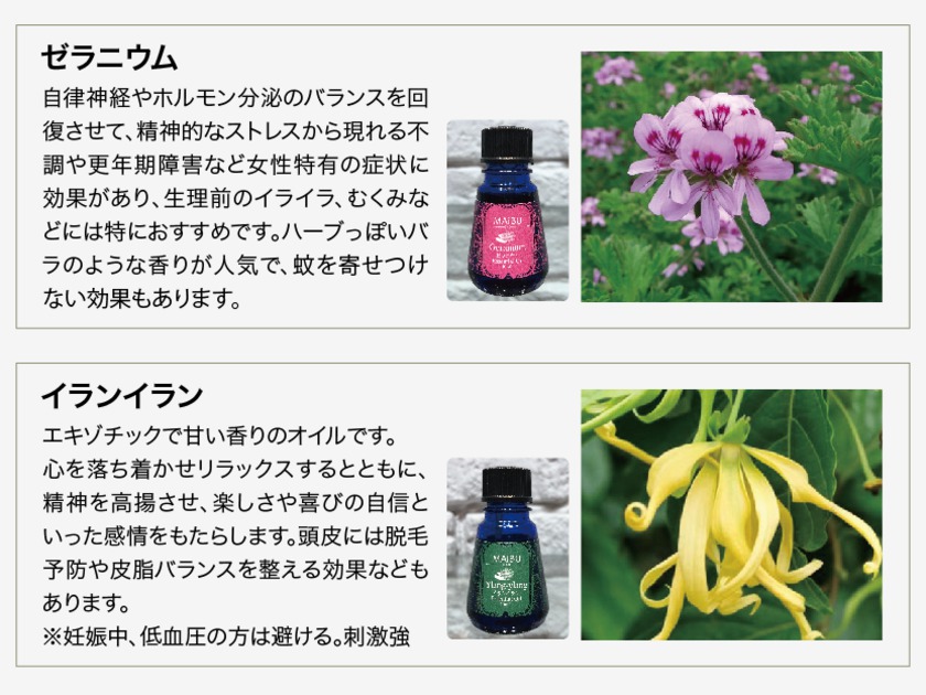 虫よけの高価もあるゼラニウムは女性に人気の香り。それに対し、
