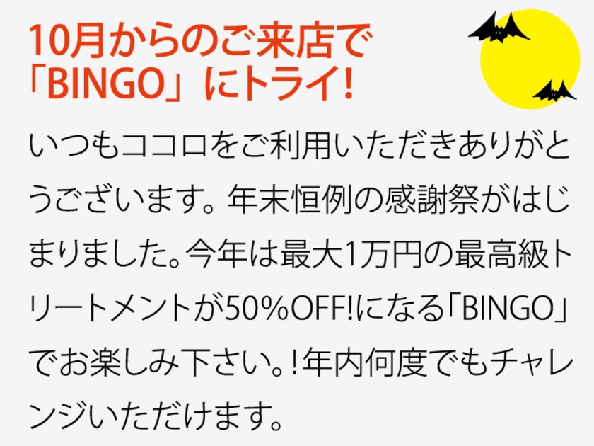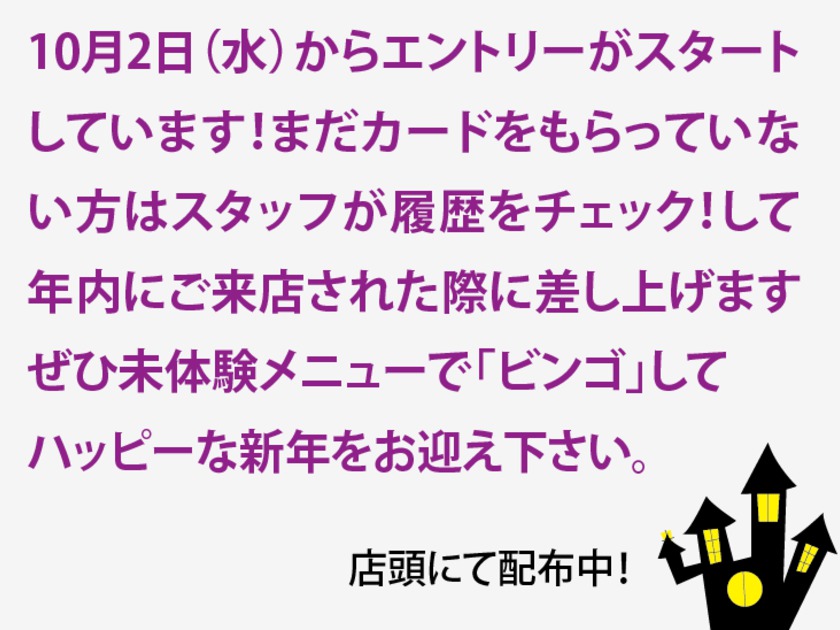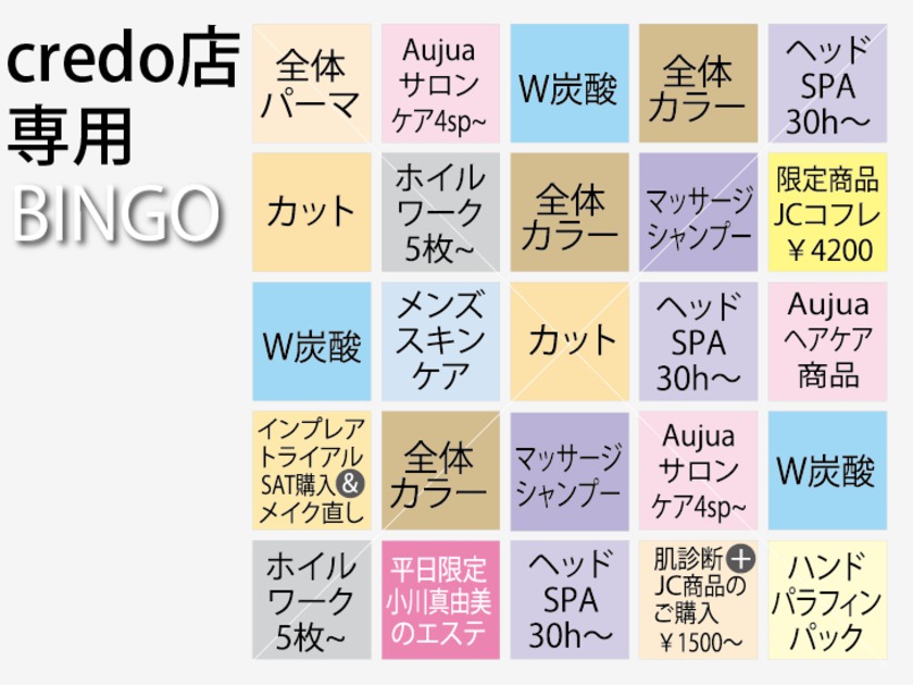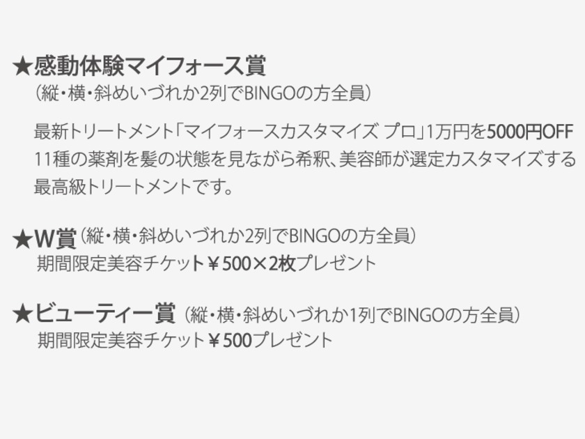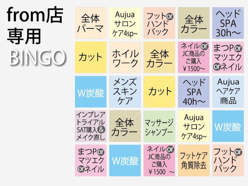 5.ビンゴカードはお一人様に付き1枚、各店舗の担当スタイリストがさしあげております。