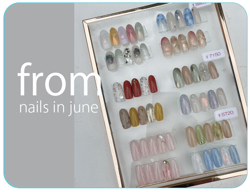 6月の定額ネイルです。こちらのジェルネイルデザインはフロム店にて受付ております。